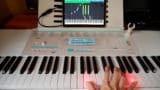 パソコンには電子ピアノをMIDIという規格で接続して、Synthesiaで落ちてくるバーを見ながら電子ピアノで実際に演奏するという感じです。